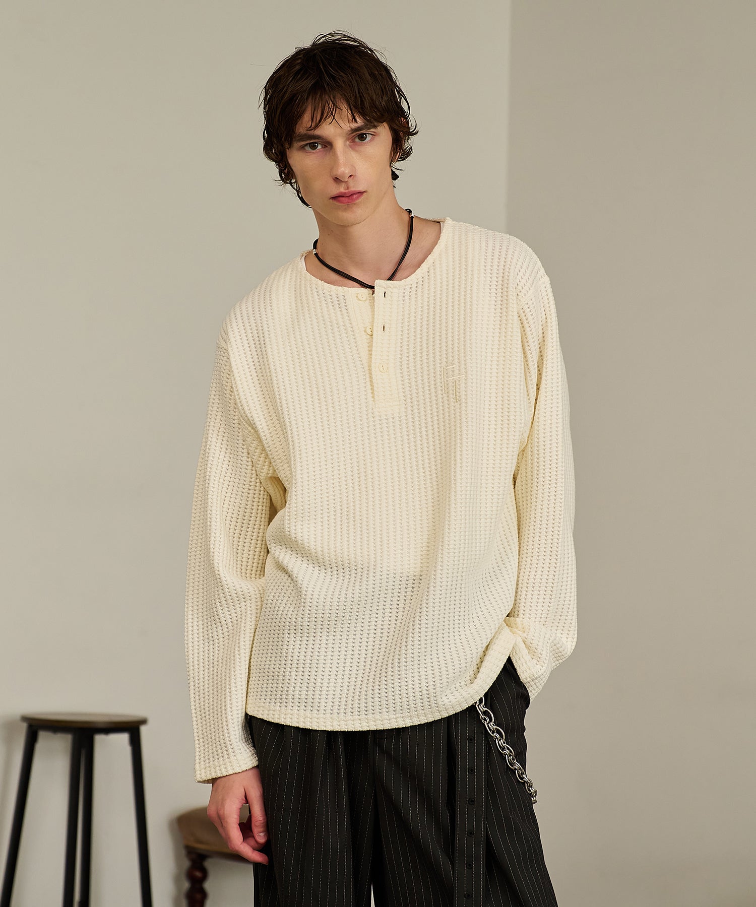 Thermal Texture Henley Top(Ivory)