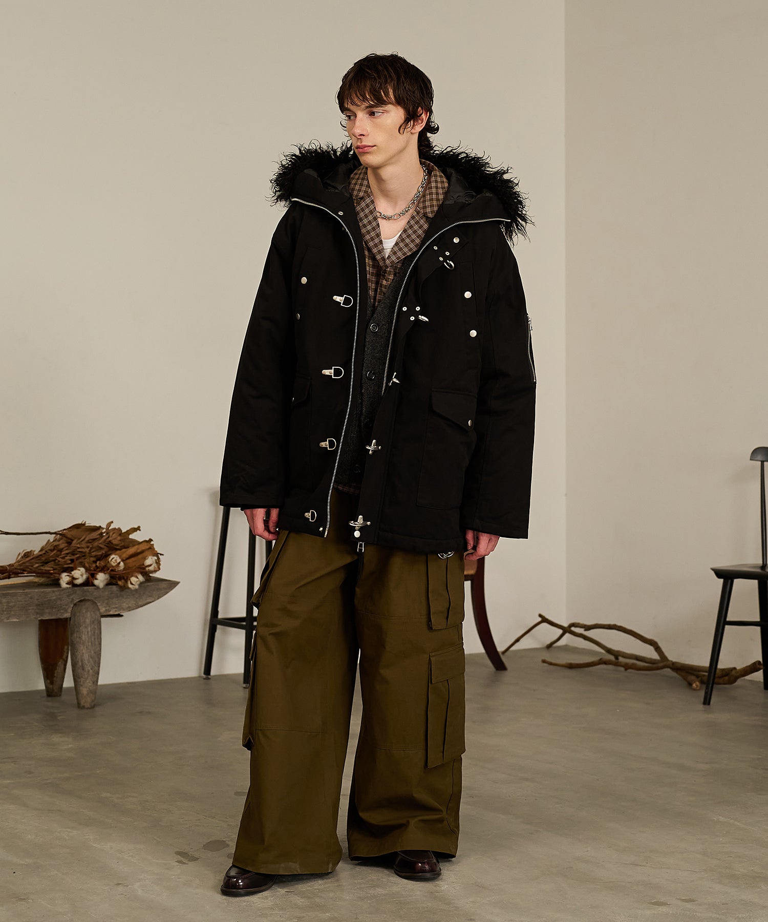 左右に配したダブルポケットが象徴的なカーゴパンツ。