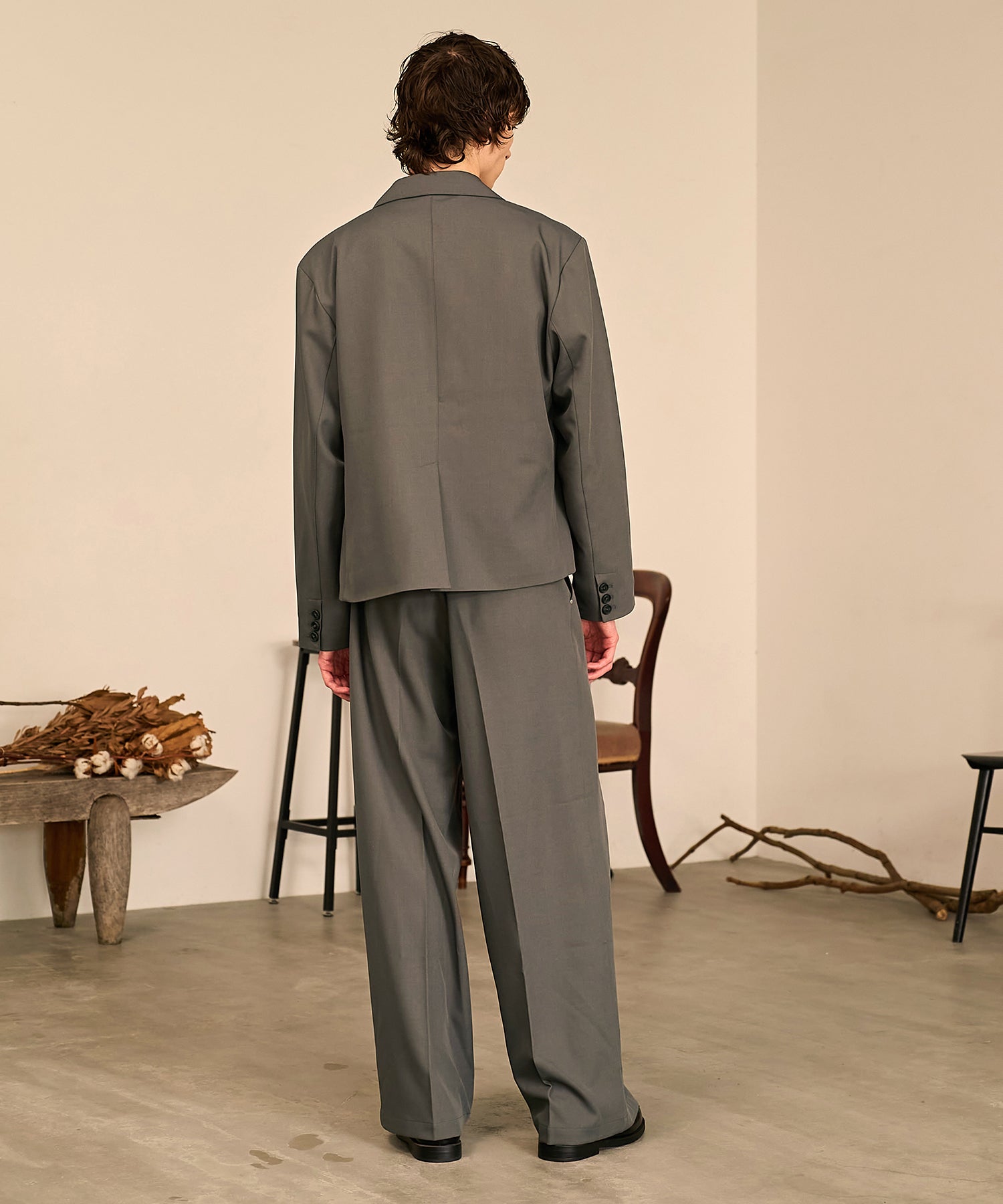 ジャケットとセットアップで着用可能なワイドシルエットのスラックス。