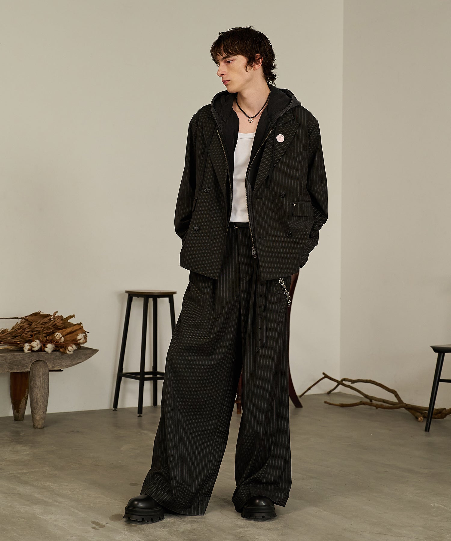 微光沢のドレープ感のある梳毛感の生地を使用。